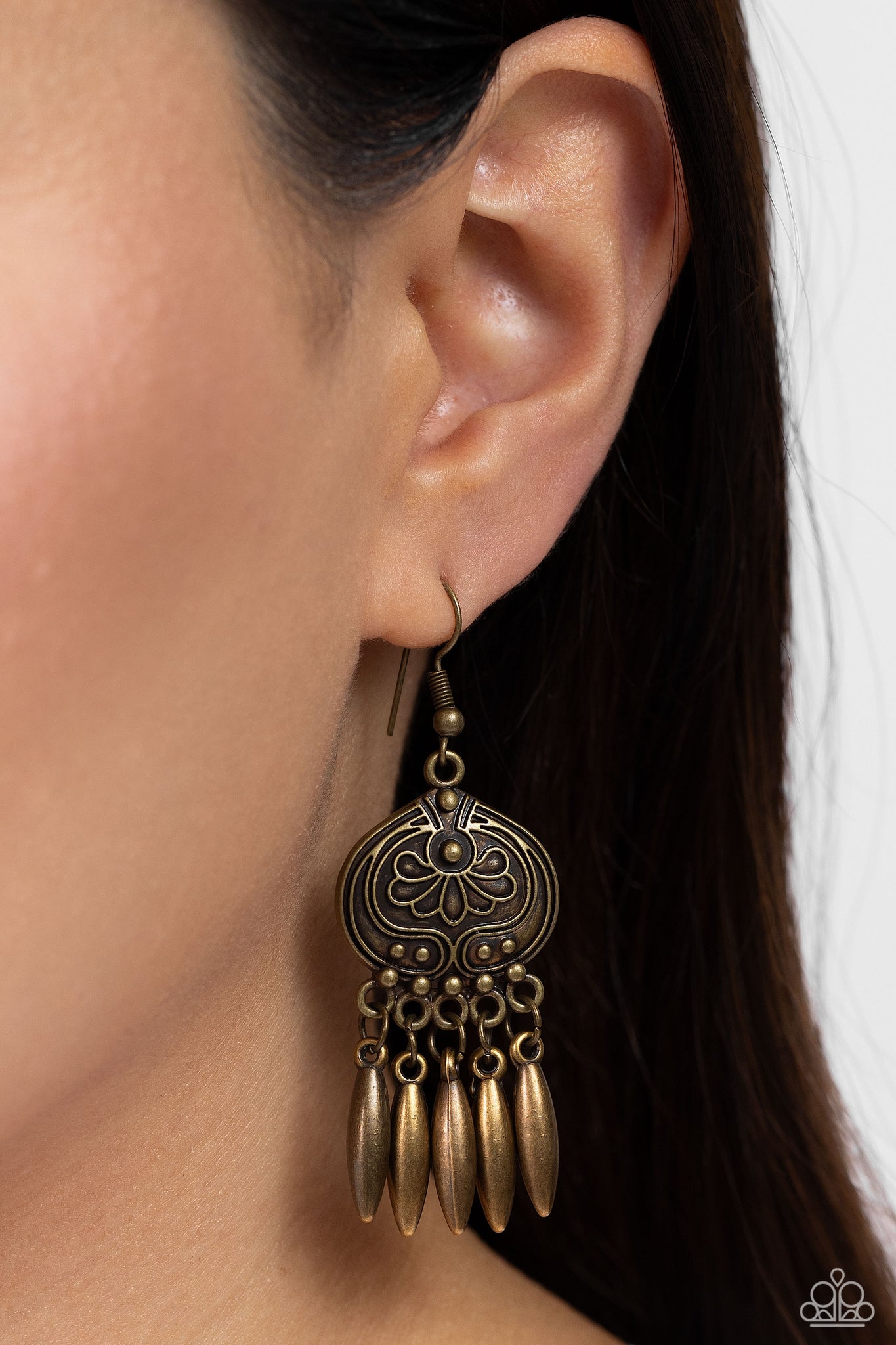 Paparazzi Future, PASTURE, and Present - Brass Earring
